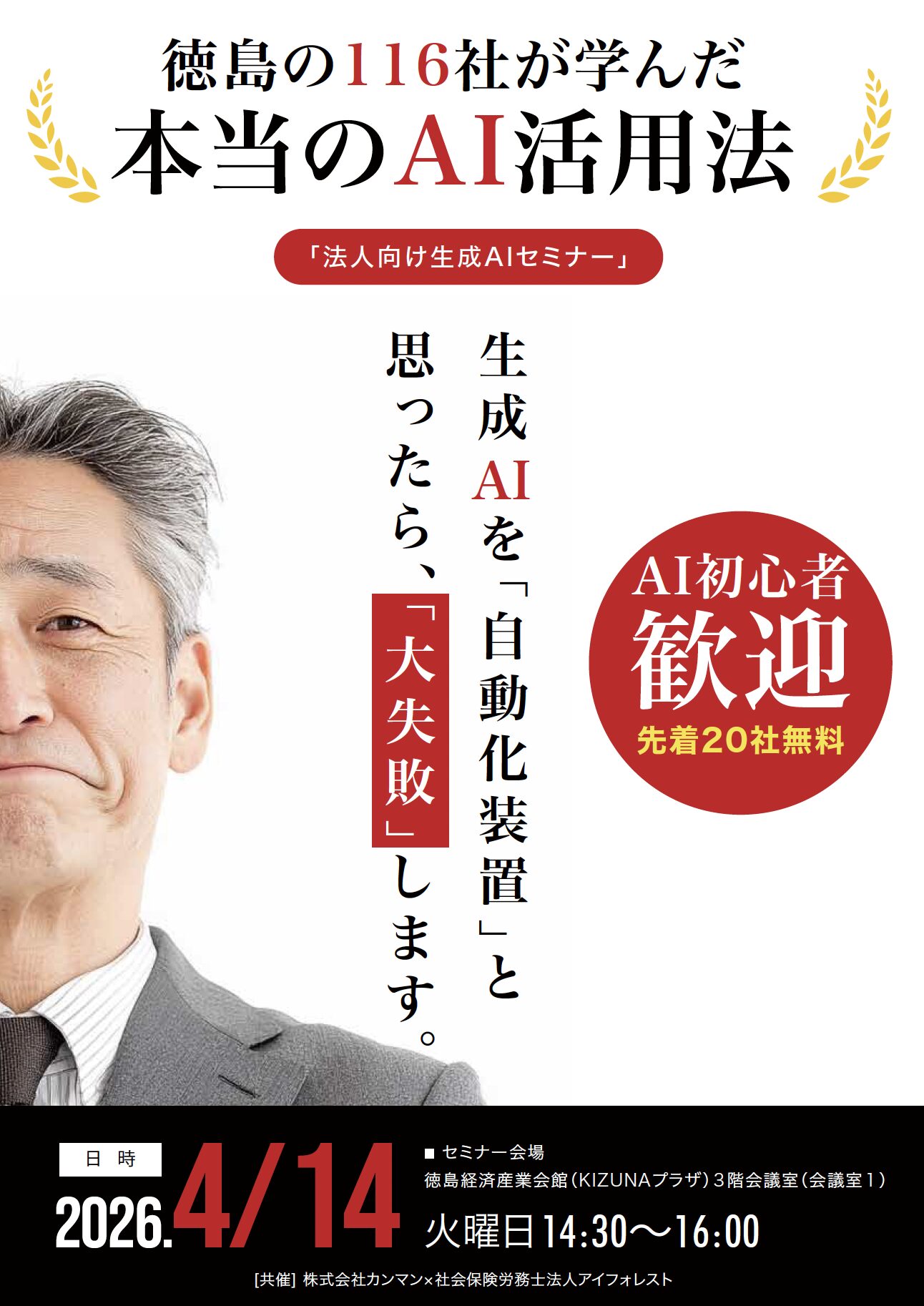 【参加無料】徳島県・徳島県発明協会主催「生成AI活用と知財リスク管理」セミナーに登壇します(3/4)