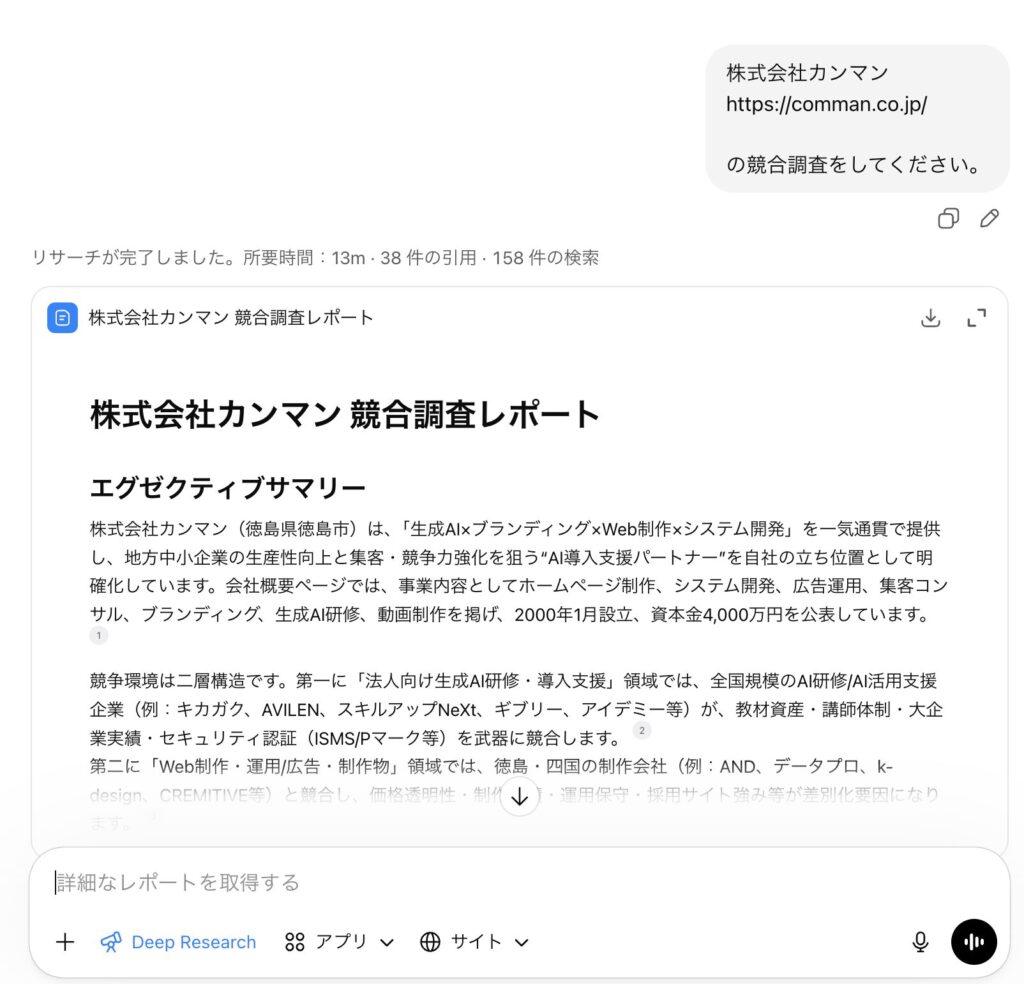 商談前の企業リサーチは重要ですが、手作業でやると1社あたり30分以上かかることも珍しくありません。AIに「株式会社○○の事業内容、最近のニュース、業界の課題を整理して」と指示するだけで、数分でリサーチの概要がまとまります。