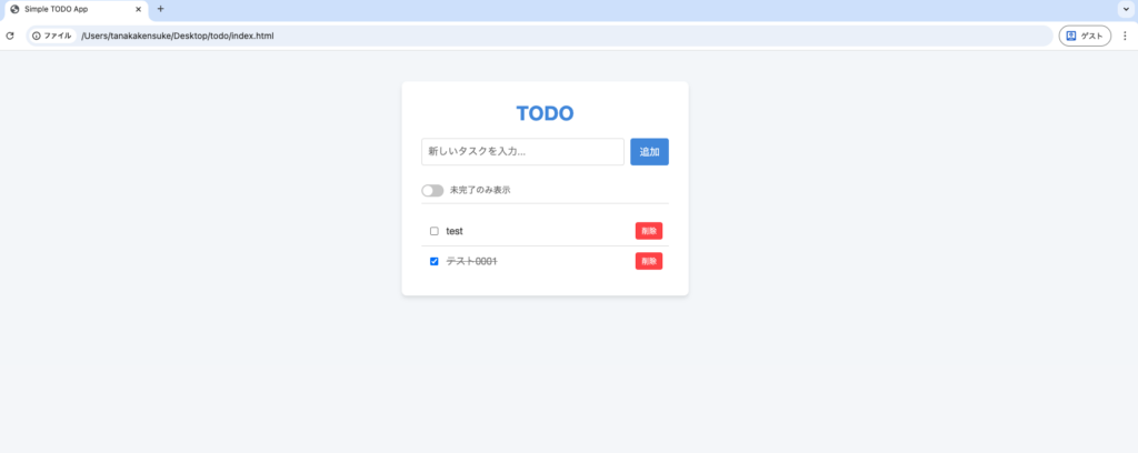 - 画面:入力欄とリストのみ。凝ったデザイン不要