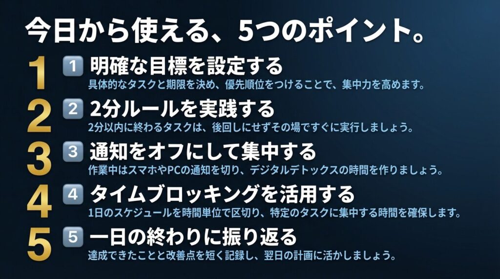 「わかった、使ってみよう」と思った方に、実践的なポイントをお伝えします。私が実際に試して「これは効いた」と感じたことです。
