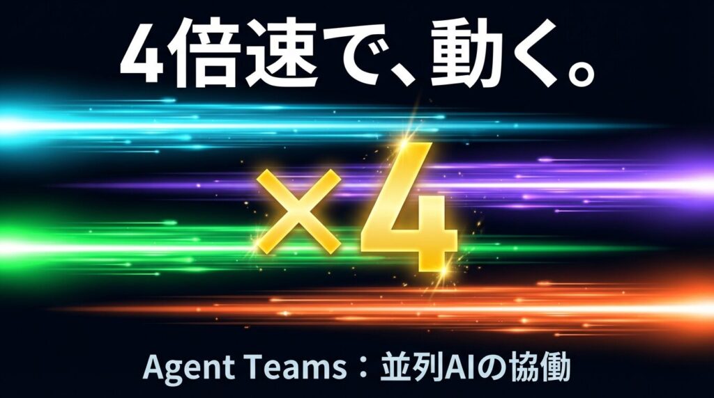 冒頭で紹介した「AIチームが一斉に動き出した」体験の正体がAgent Teamsです。
