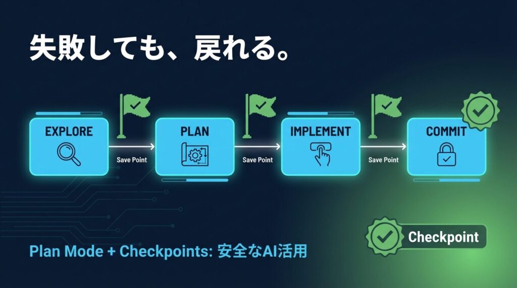 Plan ModeとCheckpointsは、そのような不安を払拭するために設計された機能です。