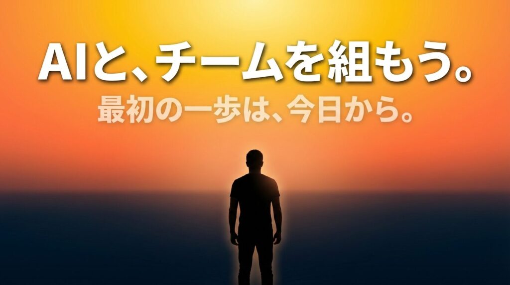 たとえば今日、こう試してみてください。「ある作業を、部分的にAIに任せてみる」。全部任せようとしなくていい。最初は「このメールの返信文を一緒に考えて」でも「この資料の要点をまとめて」でもいいです。