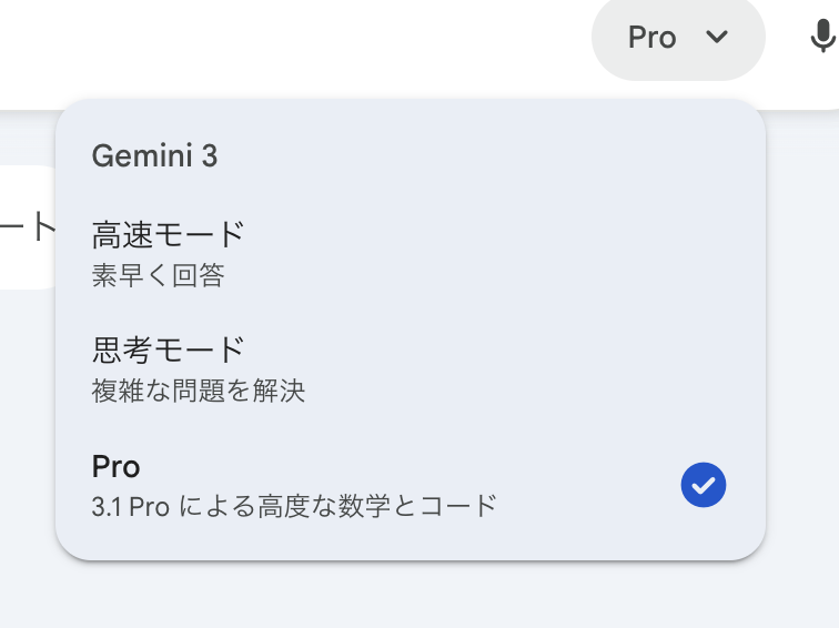 通常の使用:gemini-3.1-pro-preview カスタムツール機能を使用する場合:gemini-3.1-pro-preview-customtools