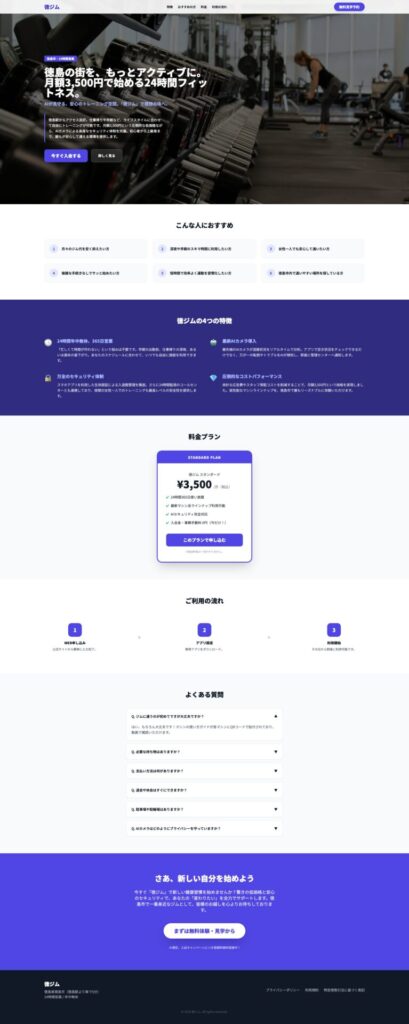 今回は、仮想の「ジムのLP」を作る前提でご紹介します。