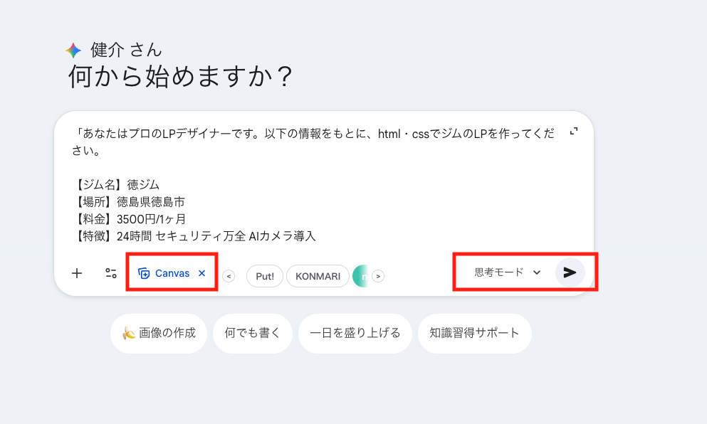 これだけです。LP制作で一番時間が溶けるのは「それっぽい言い回しを作る」ところですが、そこをGeminiに任せられるのが大きいです。