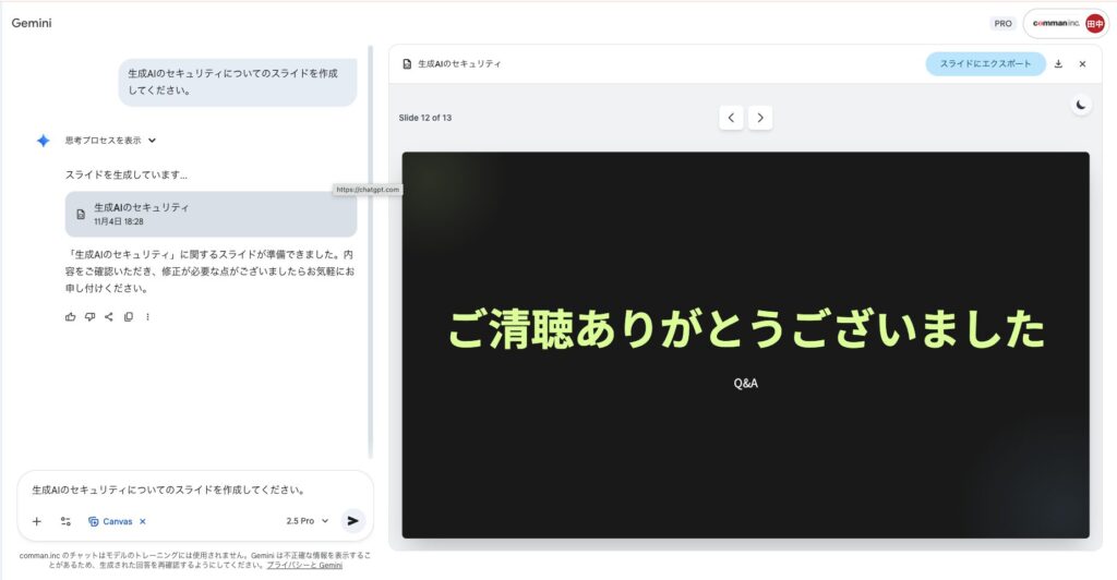 このように、AIと対話しながらスライドをブラッシュアップしていきます。