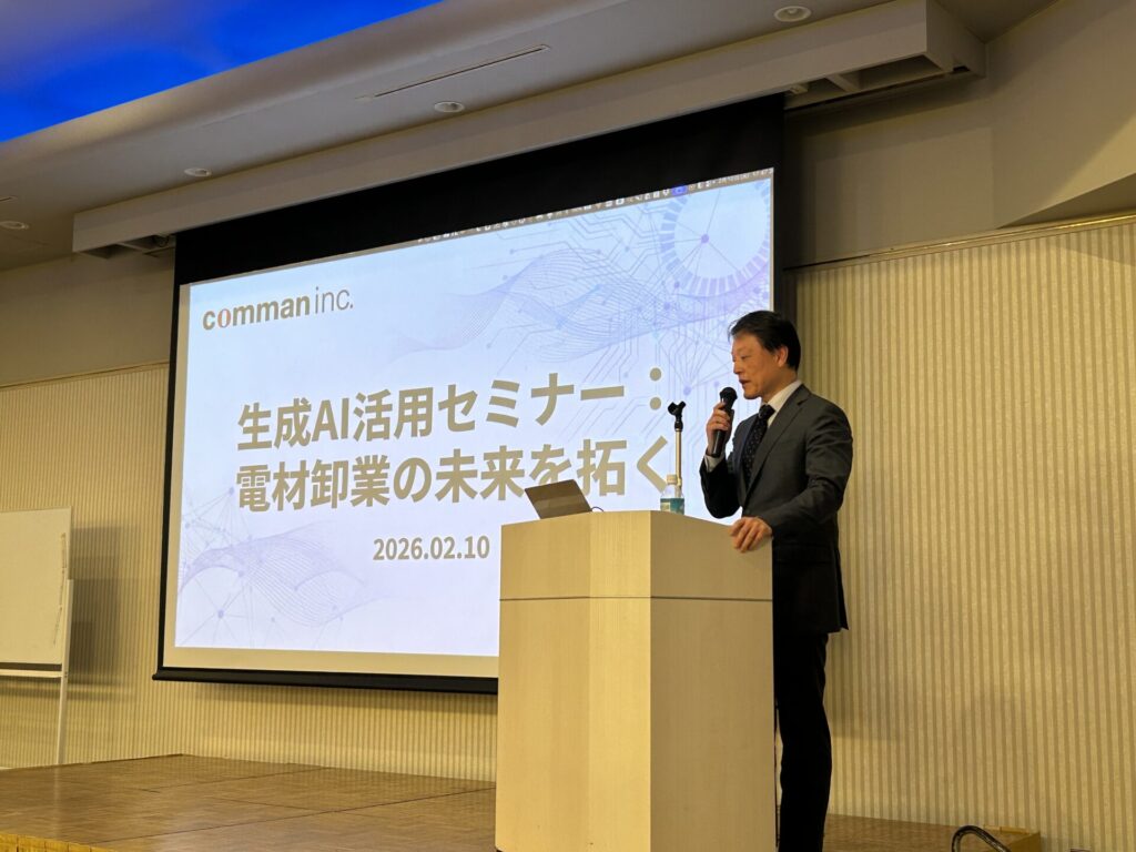 2026年2月10日、四国電設資材卸業協同組合・徳島支部様のご依頼により、ホテルサンシャイン徳島にて生成AIセミナーの講師を弊社代表取締役・貝出康が務めました。