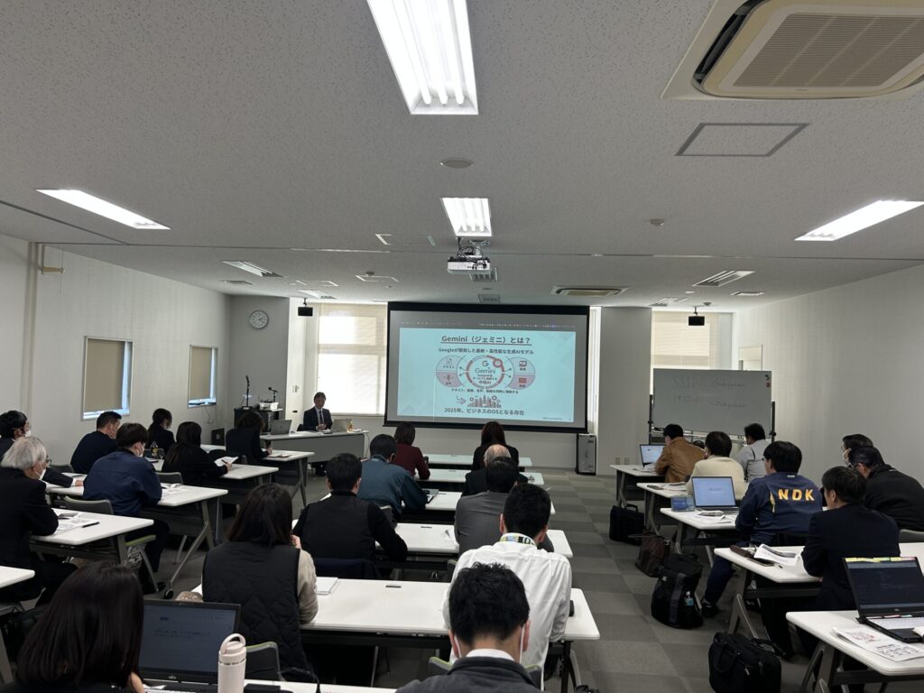 セミナー内では、Google Geminiを実際に活用しながら、「AIの本当の実力」を知るためのデモを実施。明日からすぐに使える具体的な仕事活用術や、導入時に陥りやすい注意点について詳しく解説いたしました。参加者の皆様が熱心にメモを取り、終始活気ある雰囲気の中で進行いたしました。