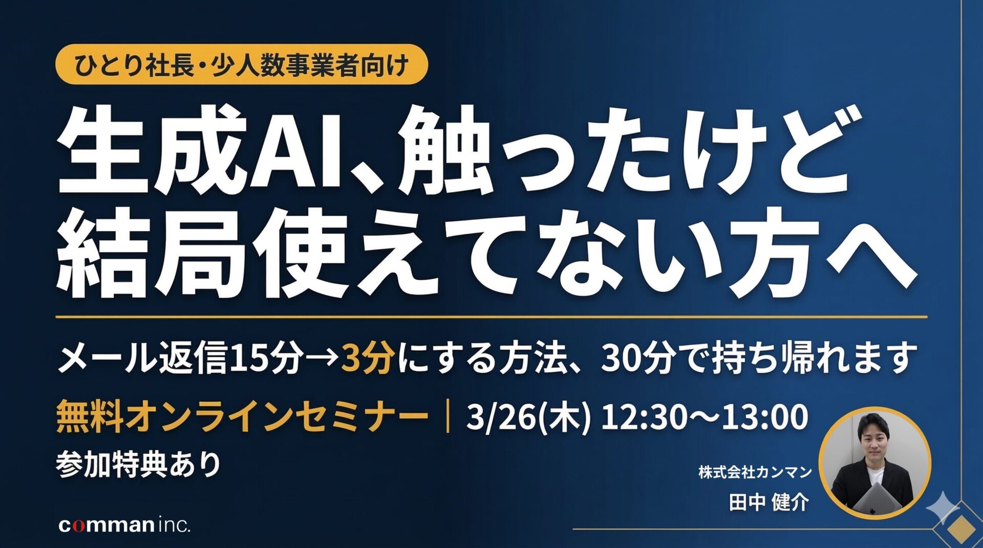 【ひとり社長・少人数事業者向け】生成AI、触ったけど結局使えてない方へ メール返信15分→3分にする”型”、30分で持ち帰れます