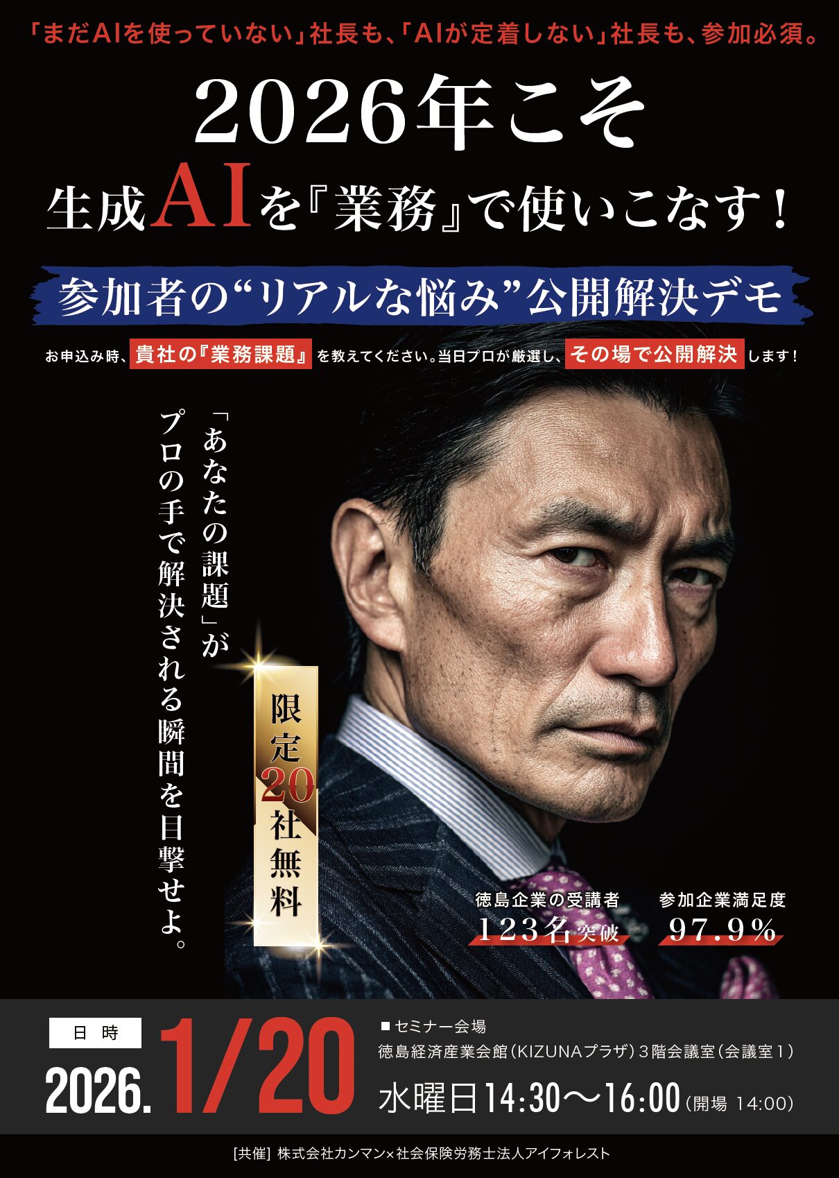 2026年こそ生成AIを『業務』で使いこなす!【法人向け生成AIセミナー】